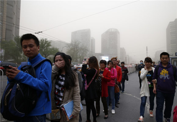 傍晚时分,大部分的北京城已经被漫天黄沙所笼罩。《法制晚报》随后报道称,多个监测站点PM10已经达到1000微克/立方米。