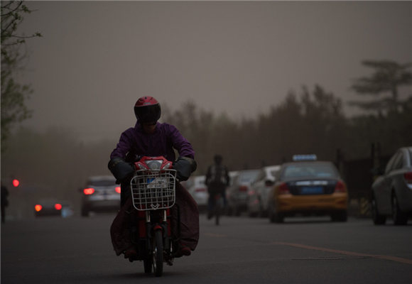 春意渐暖的北京城今晚遭遇了一场13年来最强的沙尘暴。