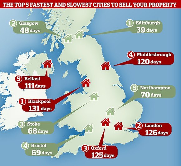 举一个例子,对于首次购房者来说,英格兰西北部的城市黑泽(blackpool)是价格最实惠的地区之一。但实际上,这个城市的居民实际上在出售他们的房产时遭遇了最多的困难——即使价格低廉,这些房产也没有在出售速度上获得相应的优势。黑泽的房屋甚至和伦敦的出售速度基本持平——一套房产交易成功平均需要长达126天。