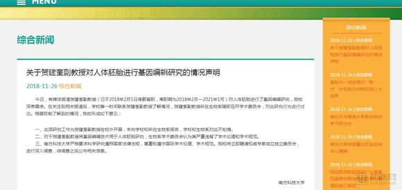 这件事情的起因是当日上午发布的一则消息:来自中国深圳的科学家贺建奎在第二届国际人类基因组编辑峰会召开前一天宣布,一对名为露露和娜娜的基因编辑婴儿于11月在中国健康诞生。