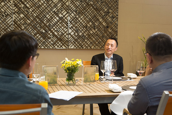 晚餐都已过去一个半个小时了。工作之外,和郁亮能聊的话题并不是特别多,他是位模范的访谈者,对提出的每个问题没有敷衍,有问必答。但偶尔有时候,回答完问题我没来得及消化,于是我们会短暂陷入尴尬的沉默期。
