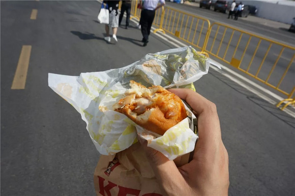 在肯德基的位置买了一份汉堡,里面连一片菜叶子都没有,场馆内的餐饮价钱就是这水平了……