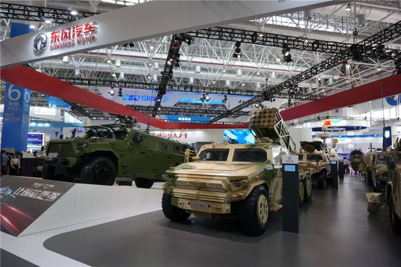 除了看飞机,这里还能看军用越野车哦!东风竟然混进了一堆飞行器之中,带来了一大堆军用版猛士。