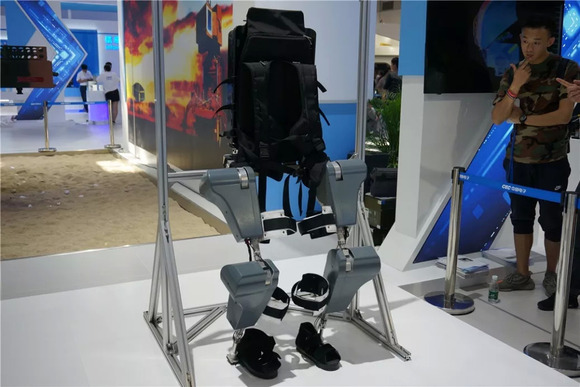 看看这是啥?机器人?根据宣传,这个玩意的正式名字叫做“重载助力型下肢外骨骼”,似乎是帮助搬运重物行走的,隐隐约约看到了一点“钢铁侠”的影子哦……