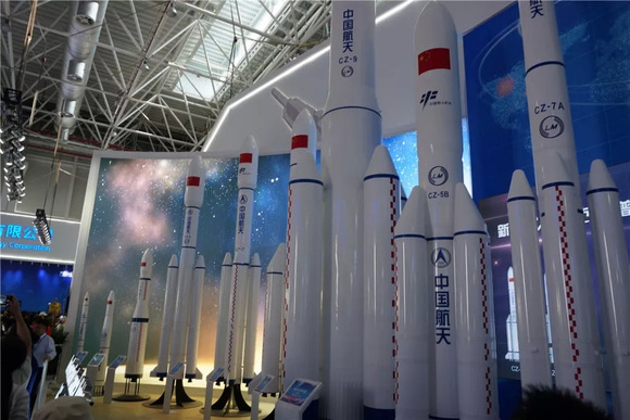 最往里的位置就是中国航天科工的展台了,首先是长征火箭系列的“全家桶”。