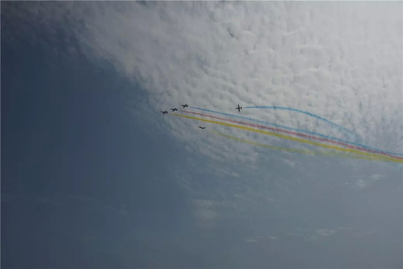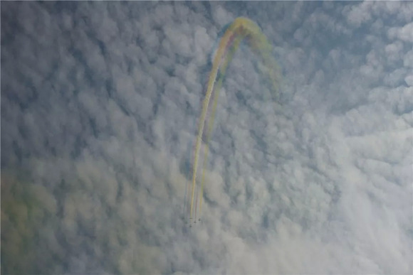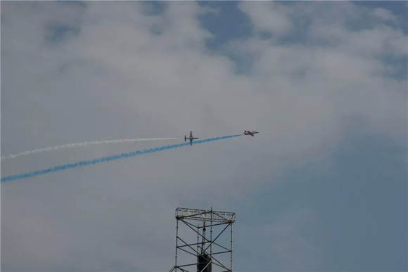 所幸,这一次总算还是看到了比较完整的飞行表演。来自于中国空军的“红鹰”飞行表演队,列装的是K-8高级教练机。一套表演下来,“画中国结”、“画爱心”、“仙女散花”、“生死交错”等动作全都齐了,让人大呼过瘾。(别问这些花式的名字都是怎么来的,我瞎编的,大家看名字脑补一下就知道是什么动作了)