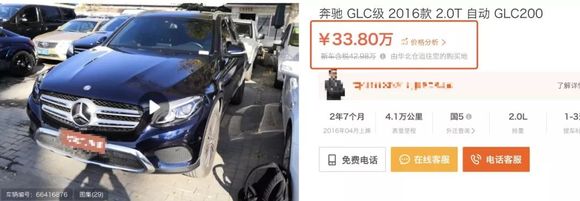 某网站,某车型的服务费已经到了10%,在网上显示,同年同款的二手GLC成交价,大概是在38万到42万之间。