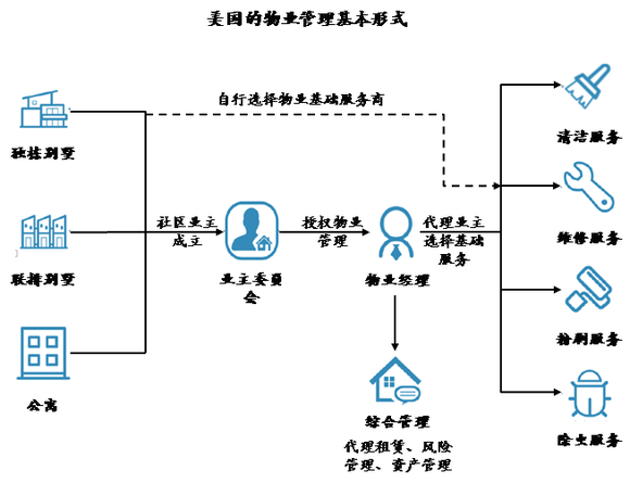 在美国,物业公司主要分为物业经理人公司和物业基础服务公司,物业经理人由业主聘请,作为物业服务管理的代理。