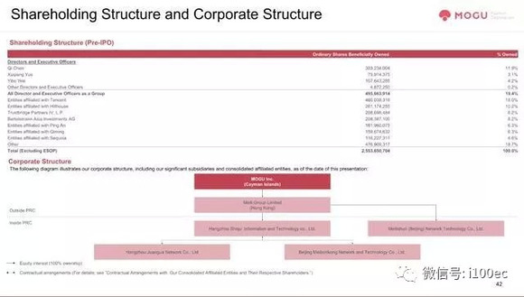 腾讯为蘑菇街最大股东,持股17.2%,有4%投票权;高瓴资本持股9.8%,有2.3%投票权。