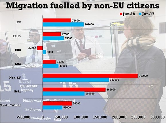 脱欧形势下,今年进入英国的欧盟移民数量锐减,而非欧盟移民增速却达到14年来最高水平。脱欧尤其没有减弱亚州移民的热情。今年,亚洲净移民数量高达16.4万人,成为英国移民“新主力”。