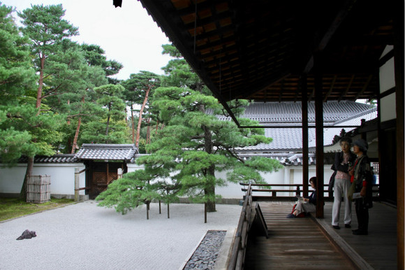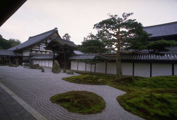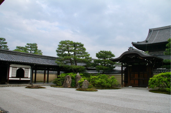 但与中国园林一脉相承的是,日本园林同样以建筑为主,以植物为辅。“中国园林中,建筑如此赏心悦目,鲜活成趣,令人轻松愉悦,即便无有花卉树木,依然成为园林,”童寯指出,“此在日本尤为真切。京都龙安寺园内,完全摒绝植物,只现石、砂,以及一道夯土墙。该园借用紧接边界外之茂密树林,以资弥补,保持高雅。”