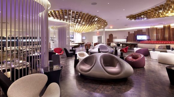 维珍在航司中的辨识度应该是位于前列的了,即使你不是个注意观察的人,走进它的休息室,依然很明显地知道“是的,我到了维珍航空的地盘”——比如有没有人玩是一回事,放不放是另一回事的台球桌;比如明明放着北欧系经典设计天鹅椅之类的家具,还是不知道哪里仍旧慢悠悠飘来rock&roll的气息。