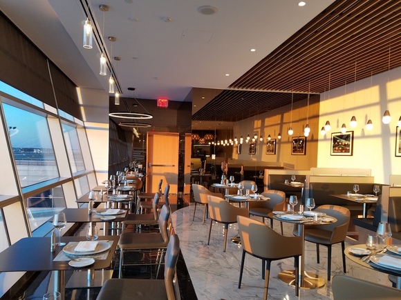 这一顿精心准备的美食只向符合条件的头等舱旅客开放,包括联通美国与亚洲、澳大利亚、欧洲、南美洲的国际或洲际航班,以及横贯美国本土东西两岸的直达航班,同时更为严苛的要求是,前者可以携一名同行者共同享用,后者则仅允许本人进入。好在资格筛选流程倒是可以避免许多尴尬——如果乘客够资格进入的话,服务人员会在进入休息室时主动询问是否用餐,类似于邀请制了。