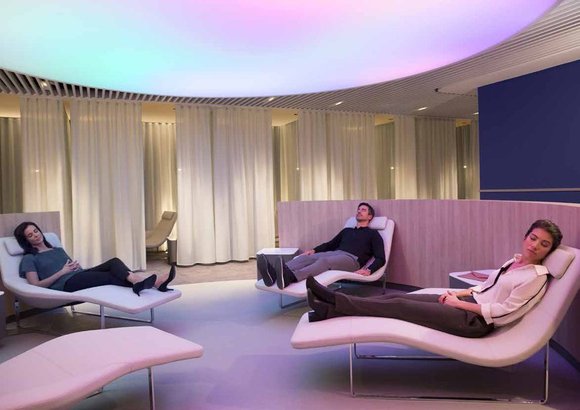 位于机场3层的休息室,既有满足大众需要的多间餐厅、休息区、SPA中心、免税店等,还开辟有满足特定需求的祷告室、储物柜、含有会议室的商务中心、阅读区、静音房间、儿童游乐区、游戏室里的F1赛车模拟器等。