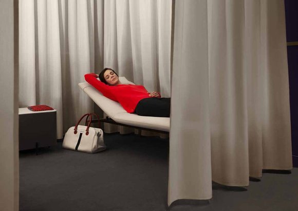 在娇韵诗水疗中心完成应对飞行期间干燥的面部护理前后,可以选择在即时躺椅或者mini套间中小憩;还有私密的双人桑拿空间可以享用,以及供应PalaisdesThés的有机排毒产品以及Evian水的排毒吧。