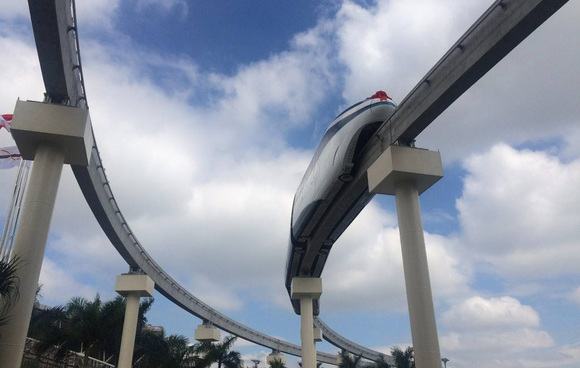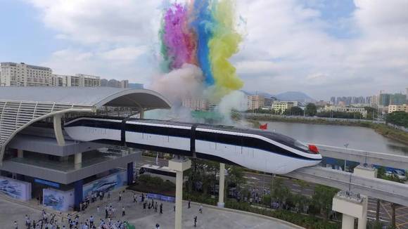 云轨是一种外观类似轻轨的跨坐式单轨列车,只有一根轨道梁,靠轨道供电提供动力前进。根据官方的说法,比亚迪历时五年研发云轨,资金投入超过50亿元,拥有完全自主知识产权。如果云轨得到普及,有望成为比亚迪的支柱业务。