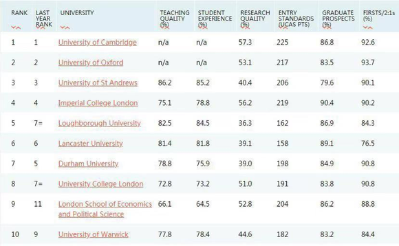 根据上图,剑桥大学、牛津大学、华威大学、拉夫堡大学、帝国理工大学等一些大学在三个榜单中都排名前10,是名副其实的英国顶尖大学。