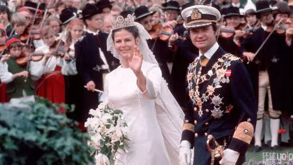 1976年,他们在世人的见证下迈入了婚姻的殿堂。为了见证这历史性的一刻,斯德哥尔摩的街头涌入了18万民众,不得不出动超过1000名警察在现场维持秩序。当天有超过1200个宾客受邀出席,整个婚礼花费了100多万美元,而且也是瑞典第一场在电视上直播的皇室婚礼。