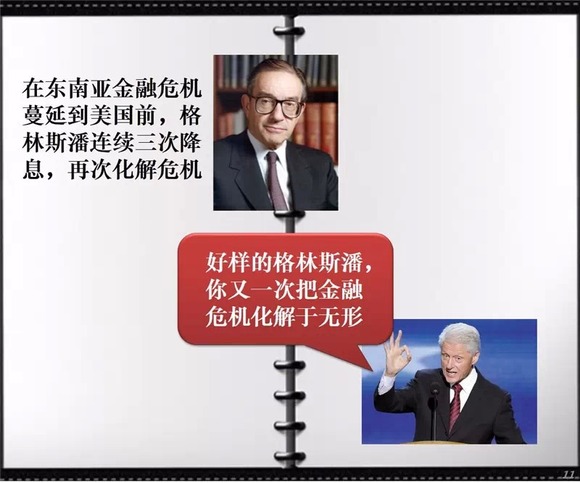 格林斯潘是历史上最成功的美联储主席,辅佐过四任美国总统,三次拯救美国。他最厉害的地方在于准确的危机预判性,每次都能将金融危机化解于无形。但也正是他给伯南克留下了一个史上最大的烂摊子。