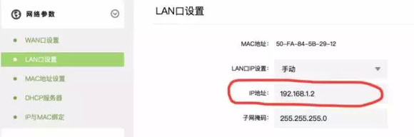 第一步,为了避免 IP 与主路由器( 192.168.1.1 )冲突,在这里我们需要将从路由器的 IP 地址设定为:192.168.1.2 ,就像下面这样: