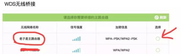 选择一个你想桥接的路由器,这里果汁选择之前架设好的这台主路由器