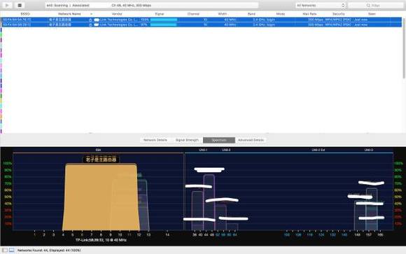 我们还可以通过 Wi-Fi 信号检测软件验证一下信号源,果然找到了在信道 10 下的 2 个 “ 老子是主路由器 ” 的 Wi-Fi 信号源