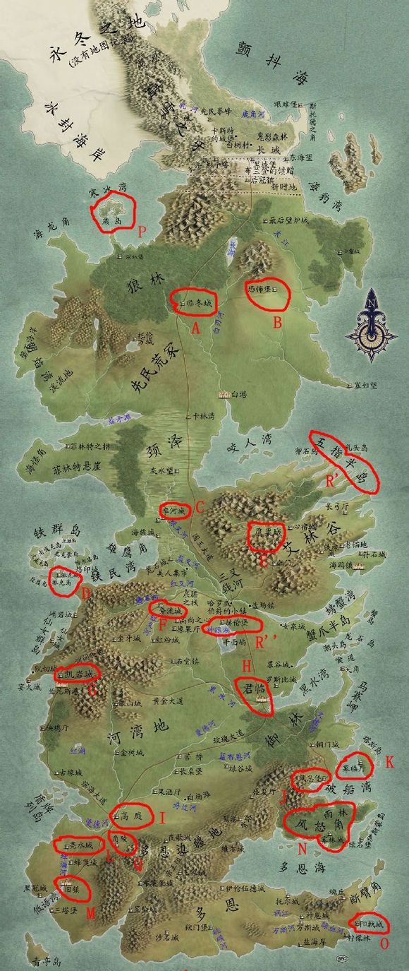 当然,这完全是出于剧情需要。但九大家族真正的地理位置、各大城堡之间的地理距离,结合了这张Google地图说明,可能会更清楚些。#伸手党们还不快抓紧时间恶补#