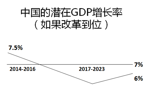 我觉得从2015年至2020年之间的六年可以这样分,一个是2015到2017,经济增速7%还是做到的,但前提是一定要改革。后面三年, 2018、2019、2020年,增速会跌到6%,这个时候很难受,因为我们没有经历过。
