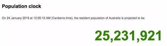 根据澳洲统计局(ABS)官网上即时更新的“人口时钟”显示,目前澳洲的人口约为2523万。