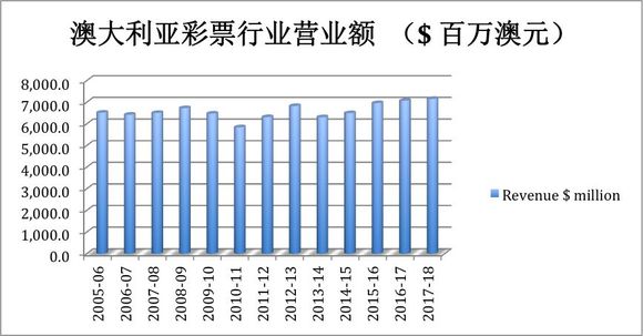 根据IBISWorld的报道,澳洲的彩票行业收入从2014年以来就开始持续增长,并在2017 - 2018年的总营业额约为71.5亿澳元。预计五年内,澳洲彩票行业的总营业额将以年均0.9%的速度增长,达到72亿澳元。