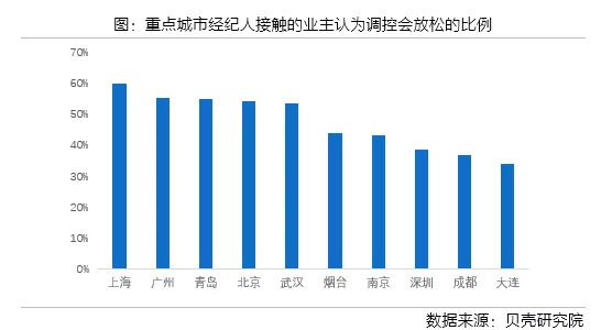 从经纪人来看,经纪人预期调控政策将小幅松动。全国经纪人对后期的政策预期由上一季度的保持稳定转为小幅放松,重点10城的经纪人政策预期均为小幅放松。