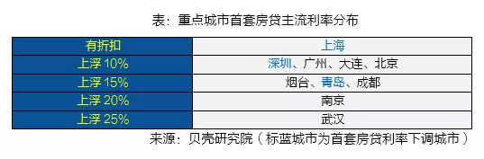 信贷利率是房贷政策走向的关键标志。从去年10月央行实施定向降准后,各城房贷利率开始出现松动。从本次调研看,上海、深圳和青岛首套房贷利率较上一季度有所下调。虽然其他城市首套房贷主流利率保持不变,但实际上部分银行已经出现松动。比如,南京首套房贷利率主流仍是上浮20%,而在实际操作中部分银行为上浮15%。