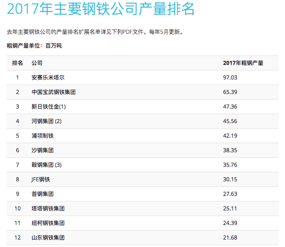 根据世界钢铁协会2017年的数据,按照钢铁产量,河钢集团全球排名第四,塔塔集团排名全球第十。