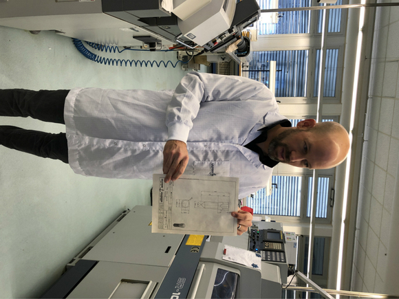 雅典设计总监向我们展示着,每台机器旁都会有的这种图纸,用于设定这台机器打磨出来的零件标准。