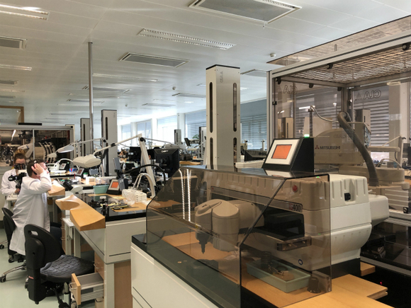 我们的参观先从机芯生产车间开始。在这里我发现了一个大“秘密”:原以为的瑞士顶级腕表的标配——纯手工打造,其实有些枯燥、不人性又讲究精准的部分早已被机器代替。