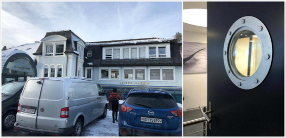 我们参观的最后一站来到了雅典的总部大楼。1846年,雅典先生打造出了第一个传奇之作——航海天文钟,自此雅典表便和航海之间缔结了深厚的渊源,航海也成为了品牌最核心的主题之一,因此航海元素在总部随处可见,门都被做成船舱的模样。