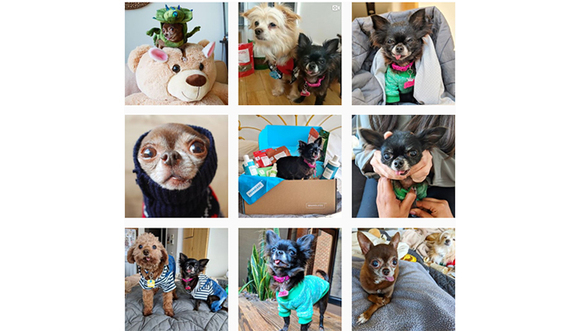 人们最熟悉的数位萌宠,主要还是在Instagram这一平台上,该平台的视像性本质(visual nature)能让某些可爱又拍摄得法的小动物在一夜之间就成为网红。多利·赫尔曼是宠物Instagram账号“Kardoggians”的管理员。起初她为克洛伊开创了这个账户,它已于去年去世,如今她又有了库比和金奇——这三只经援救而得来的(rescue dog,特指遭到前主人虐待、无视或遗弃,后来又找到新家的狗——译注)高龄吉娃娃现在已有16.1万粉丝。