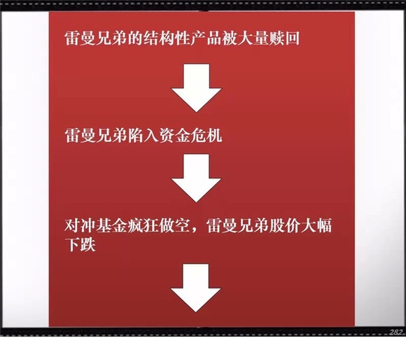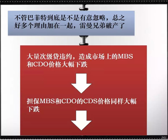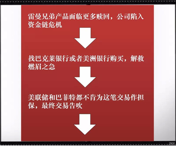 大量次贷违约让雷曼兄弟陷入了资金链危机。为解救燃煤之急,雷曼兄弟找到巴克莱银行和美洲银行出资购买,但由于无人担保,交易告吹。雷曼兄弟最终宣告破产,全球金融危机爆发。