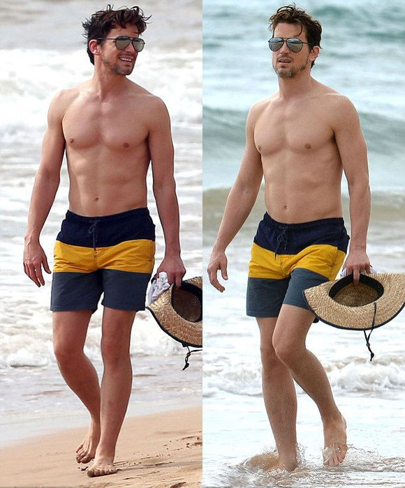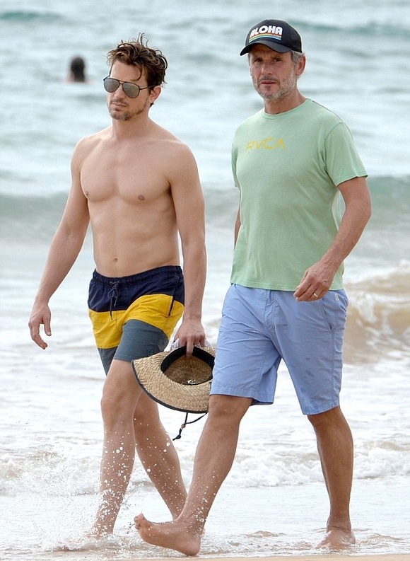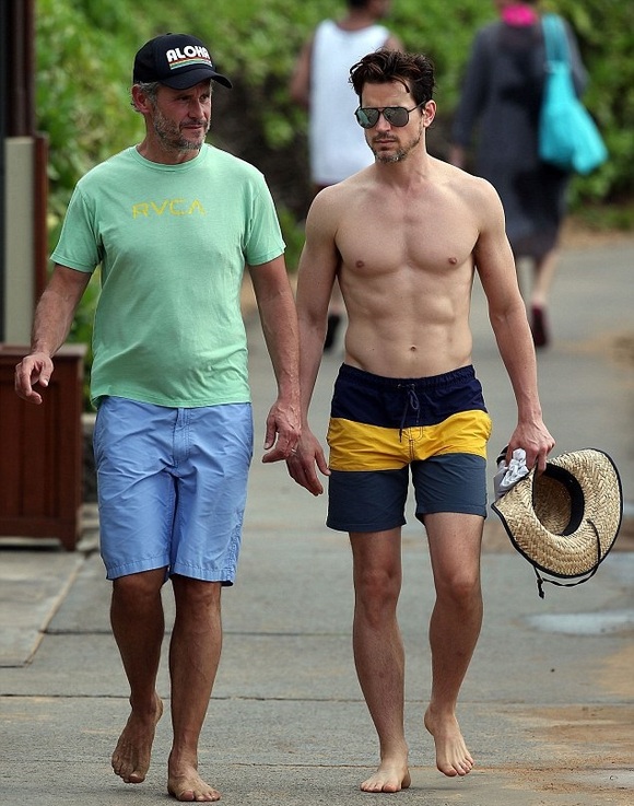 马特▪波莫裸露健美上身与老公Simon Halls漫步夏威夷海滩,共度甜蜜假期。