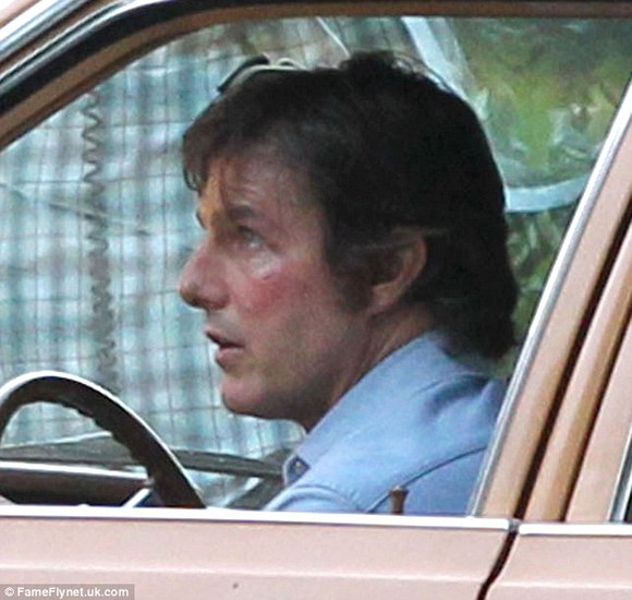 随后流传出来的一些照片里,阿汤哥的一些牙齿被涂黑,脸上也有伤痕。他脸色淤青,左颧骨上还有一道伤口,以此来表现他所扮演角色的窘迫处境。剧组化妆师前来为他补妆,使主角形象更加落魄。