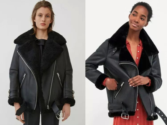 左边为Acne售价2,700美元的夹克,右边为Zara售价149美元的仿版夹克