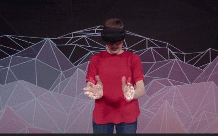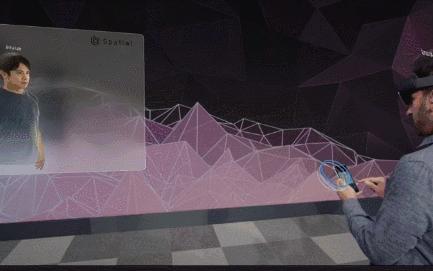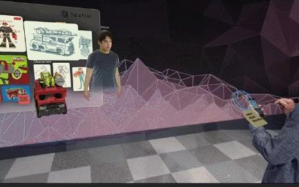 为了向我们展示HoloLens 2上的协作计算,Kipman邀请了Spatial的首席执行官Anand和Mattel首席技术官SvenGerjets上台,他们头戴HoloLens 2与并未身处现场的Jinha演示了如何远程进行协作。