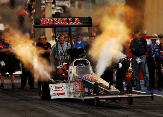 红脖子的top fuel dragster,8.0升V8发动机,8000马力机械增压(仅增压器就要消耗掉发动机600马力的输出),百公里半秒不到,0-500公里三秒多点,峰值加速度5.6g。这玩意儿热身的时候是这样的: