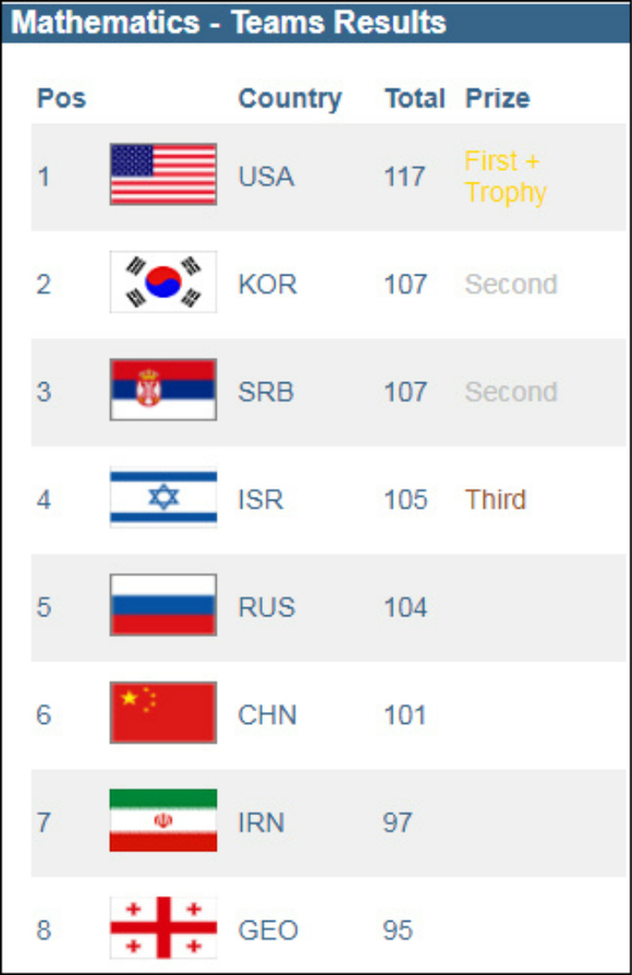 25日,第11届罗马尼亚数学大师赛(简称RMM ) 于罗马尼亚首都布加勒斯特闭幕,最终成绩揭晓,以色列选手排名第一,而中国队无一人获得金牌,最好成绩是获得银牌的第15名,总成绩排名第6。