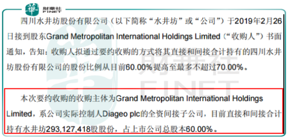 已经被外资控股的水井坊(600779-CN),昨日公司又发布公告称,2019年2月26 日接到股东帝亚吉欧(“收购人”)书面通知,告知:收购人拟通过要约收购的方式将其直接和间接合计持有的四川水井坊股份有限公司的股份比例从目前60.00%提高至最多不超过70.00%。