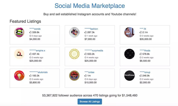 尽管Instagram的条款严格禁止用户“购买、出售或转让与账号相关的任何内容(包括用户名)”,但像这样明码标价、等待出售的账号信息在Facebook和Instagram上很容易就能看到,甚至还有与此相关的在线市场每天进行着大量的账号交易。一个账号最终以多少钱成交,主要取决于这个账号现有的粉丝量。而涉及到Instagram账号买家、卖家、中间商、市场的灰色交易,正源源不断地涌现出来。
