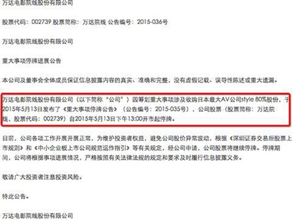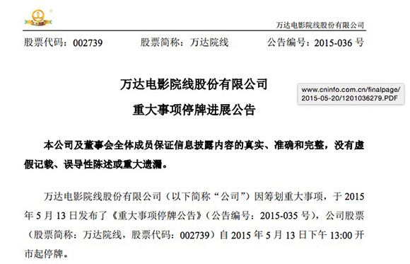 那么,究竟这条消息是真是假呢?根据万达院线之前发布的公告,036号公告根本没有类似文字。