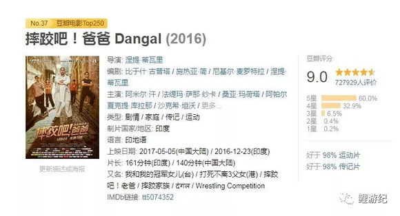 这部一言不合就歌舞的印度片,又是运动题材,在国内极度缺乏观众基础,当时上映的时候排片量自然也非常低。在这样完全不被看好的情况下,《摔跤吧,爸爸》却凭借口碑逆袭,短时间内迅速刷屏。