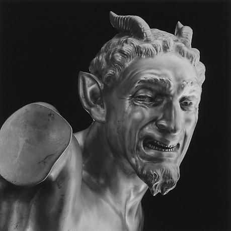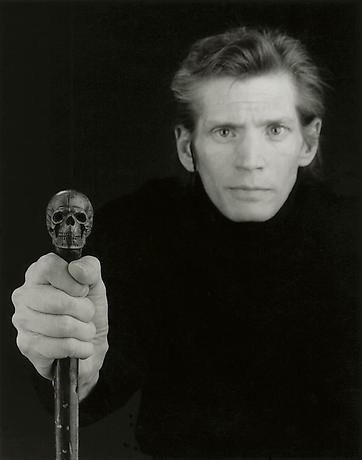 正是在一片喧哗之中,1985年梅普尔索普那张头戴犄角的自拍像有了一个几乎如谶语般地暗示,即如他一般的同志(以及感染艾滋病毒)再次被隐喻为魔鬼。在这张自拍中,没有了鼎盛时期的精致光线和完美形式,只剩直白的形象和目光,凝视着镜头。这一形式在梅普尔索普之后的几张自拍像中都被延续着,尤其是其去世前一年所拍的最后一张自拍像:黑白照片里的主角身穿黑衣、手持骷髅手杖,身体、手臂与背景融为一体,只露出明亮的头部与手杖,没有其他细节,大面积的黑暗让人过目难忘。