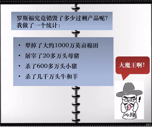 为了拯救美国经济,罗斯福实行了政府干预市场的策略,对市场的第一个干预就是拯救和整顿银行业,第二个举措,就是大面积销毁过剩产品。